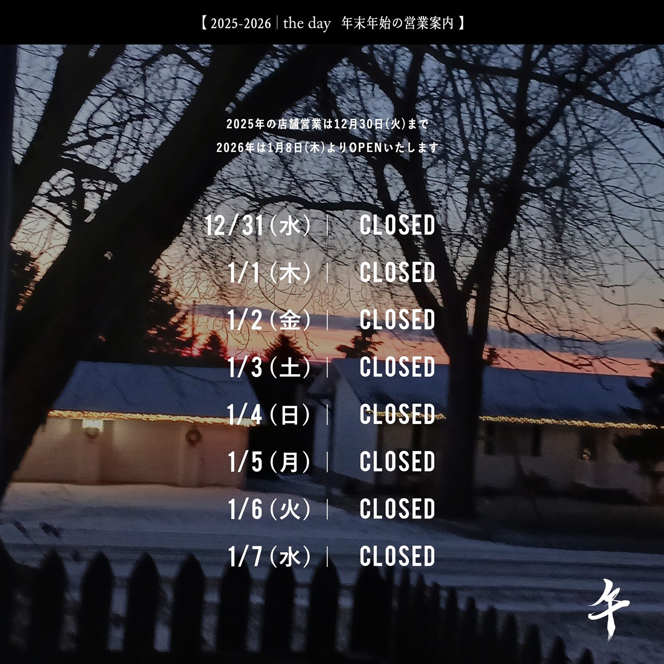 NEWS 【2025-2026】the day 年末年始の営業案内