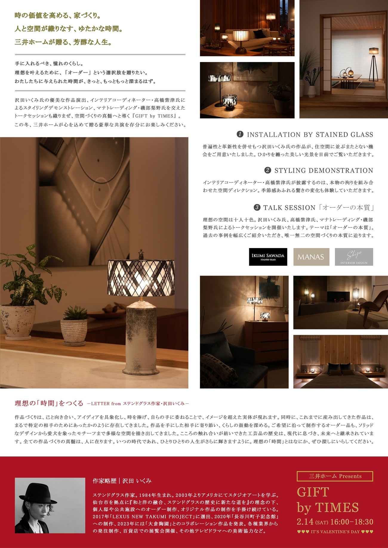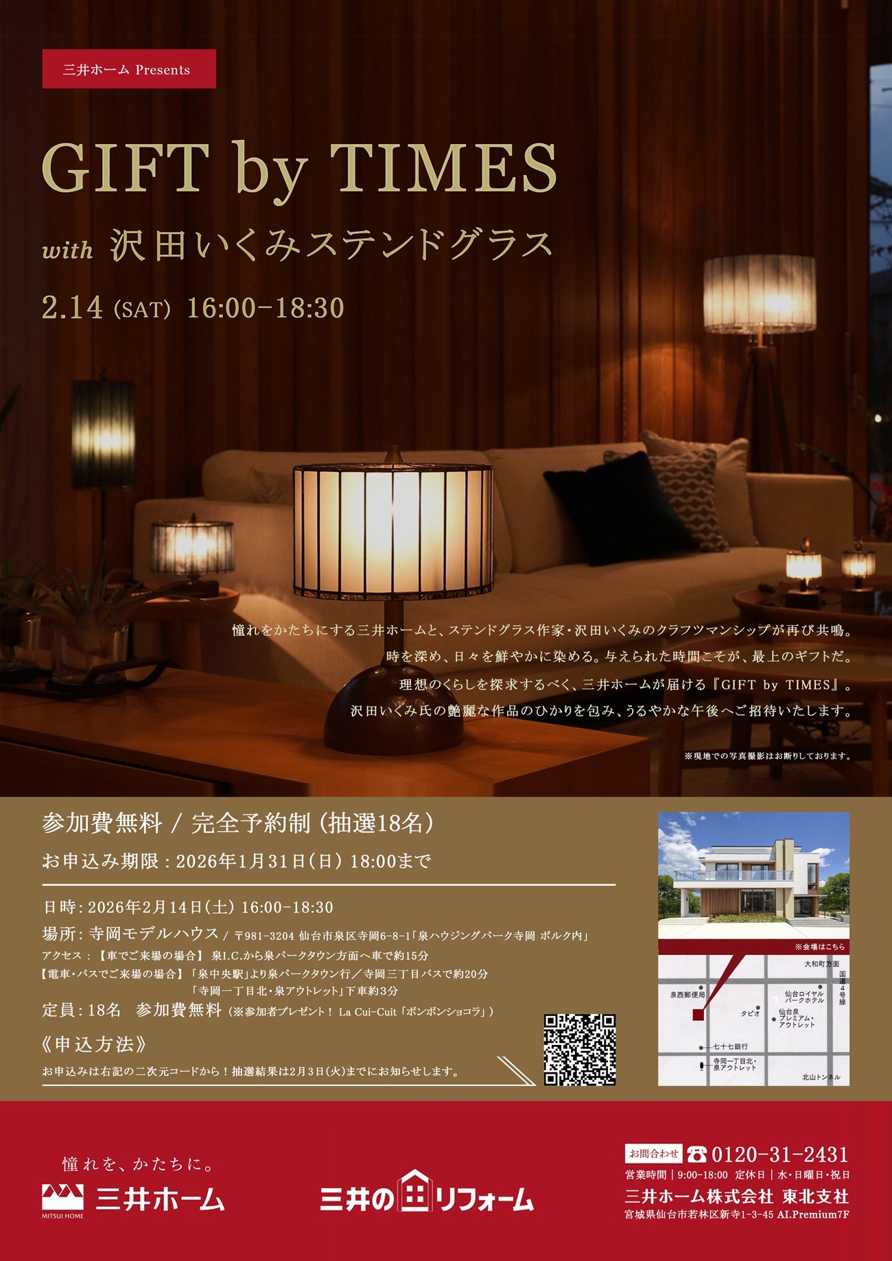 2026年2月14日(土)、三井ホーム・寺岡モデルハウスにて「GIFT by TIMES」を開催いたします。