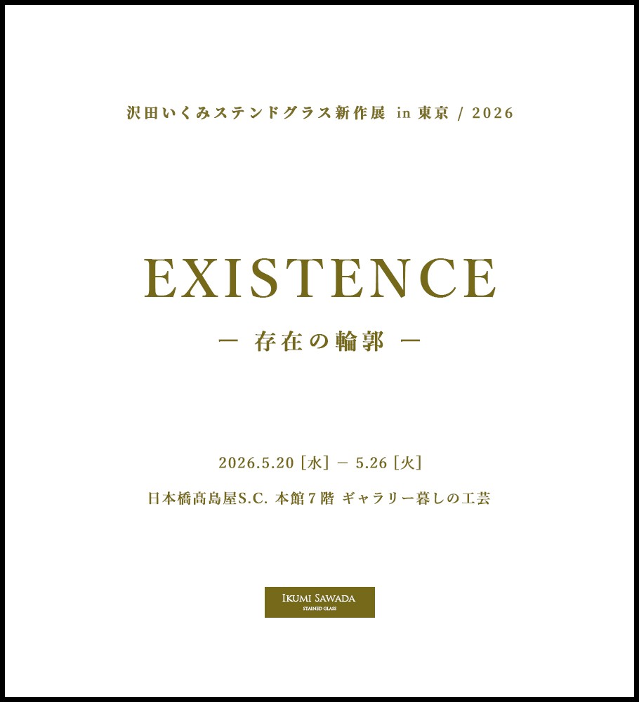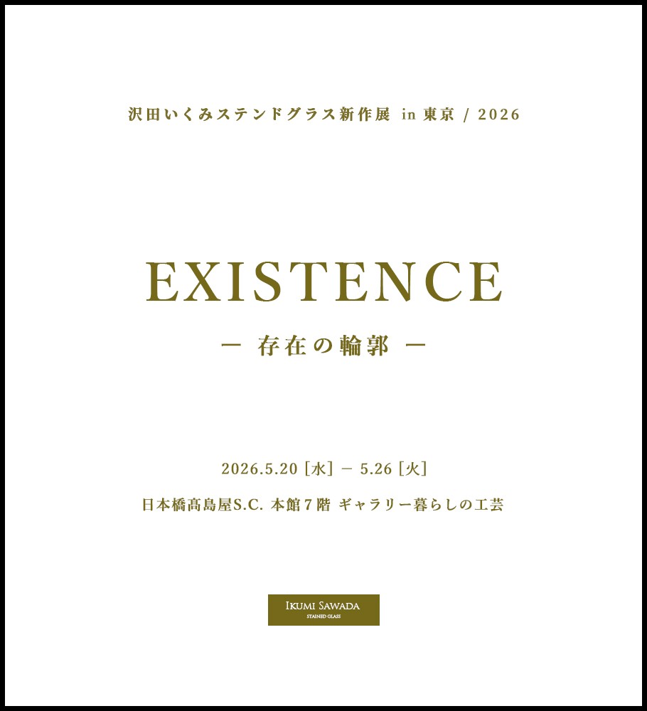 2026年春、日本橋髙島屋S.C.(東京)にてステンドグラス作家・沢田いくみの新作展『EXISTENCE -存在の輪郭-』を開催いたします。